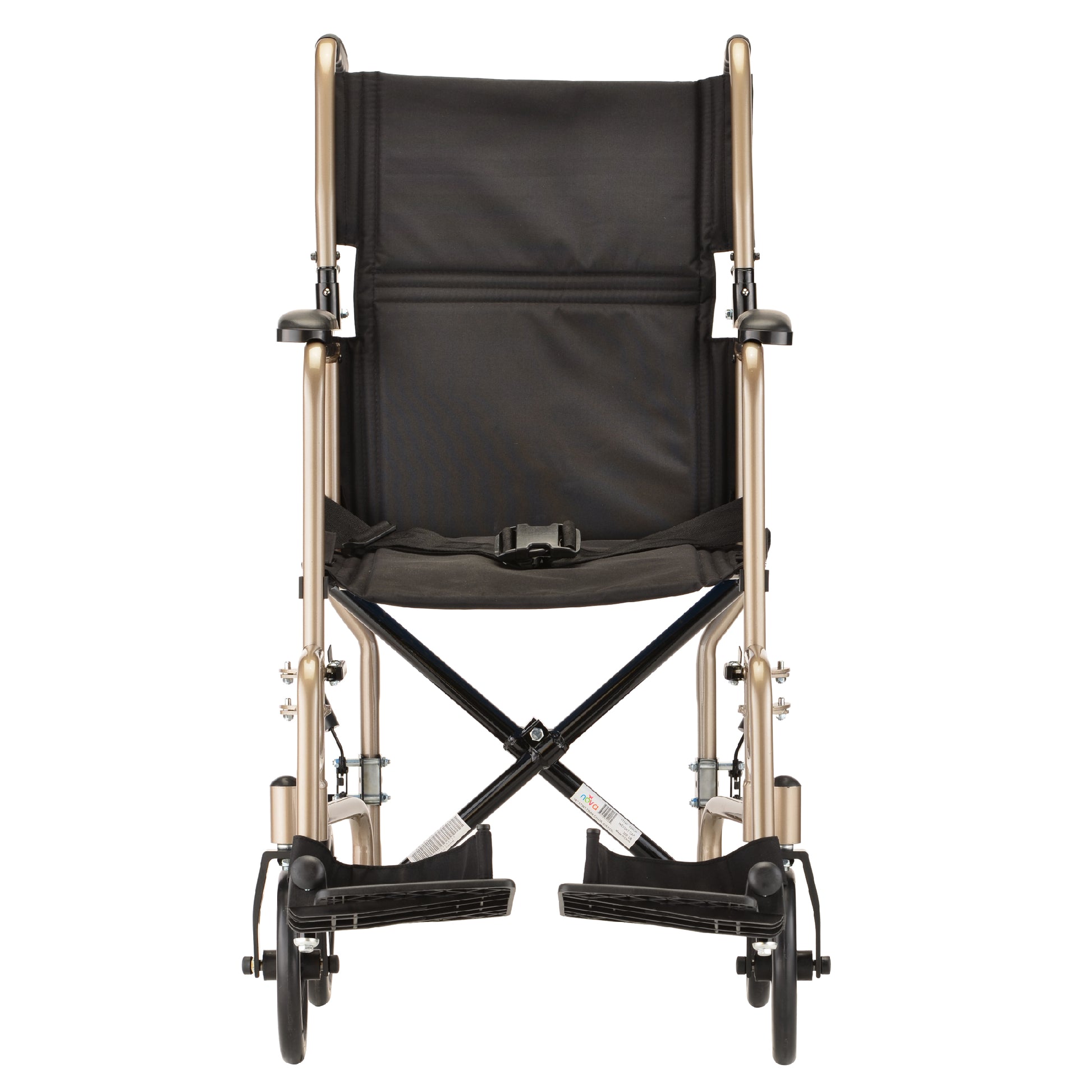 - This 19" transport chair has a carbon steel frame and padded nylon upholstery. Weight capacity is 300 pounds