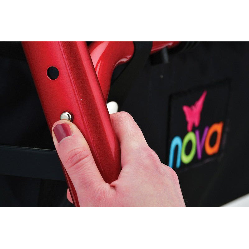 - NOVA’s PATENTED LOCKING HAND BRAKES are so easy to use and comfortable on the hands. Simply squeeze to control the speed and push down to lock the brakes in a locked and parked position