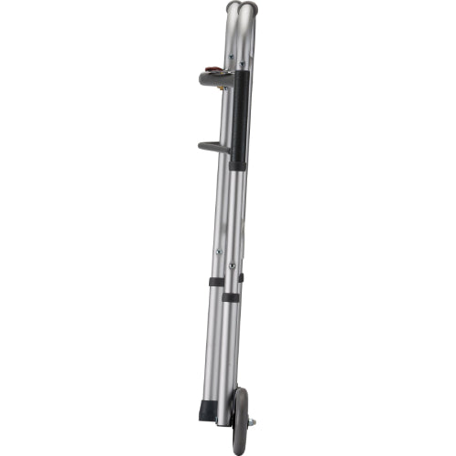 The adult folding walker has a lightweight aluminum frame, 5″ fixed wheels, and a two button release for great security. The walker folds to 4″ in width for easy transport and storage. The tip size for this walker is 40024.