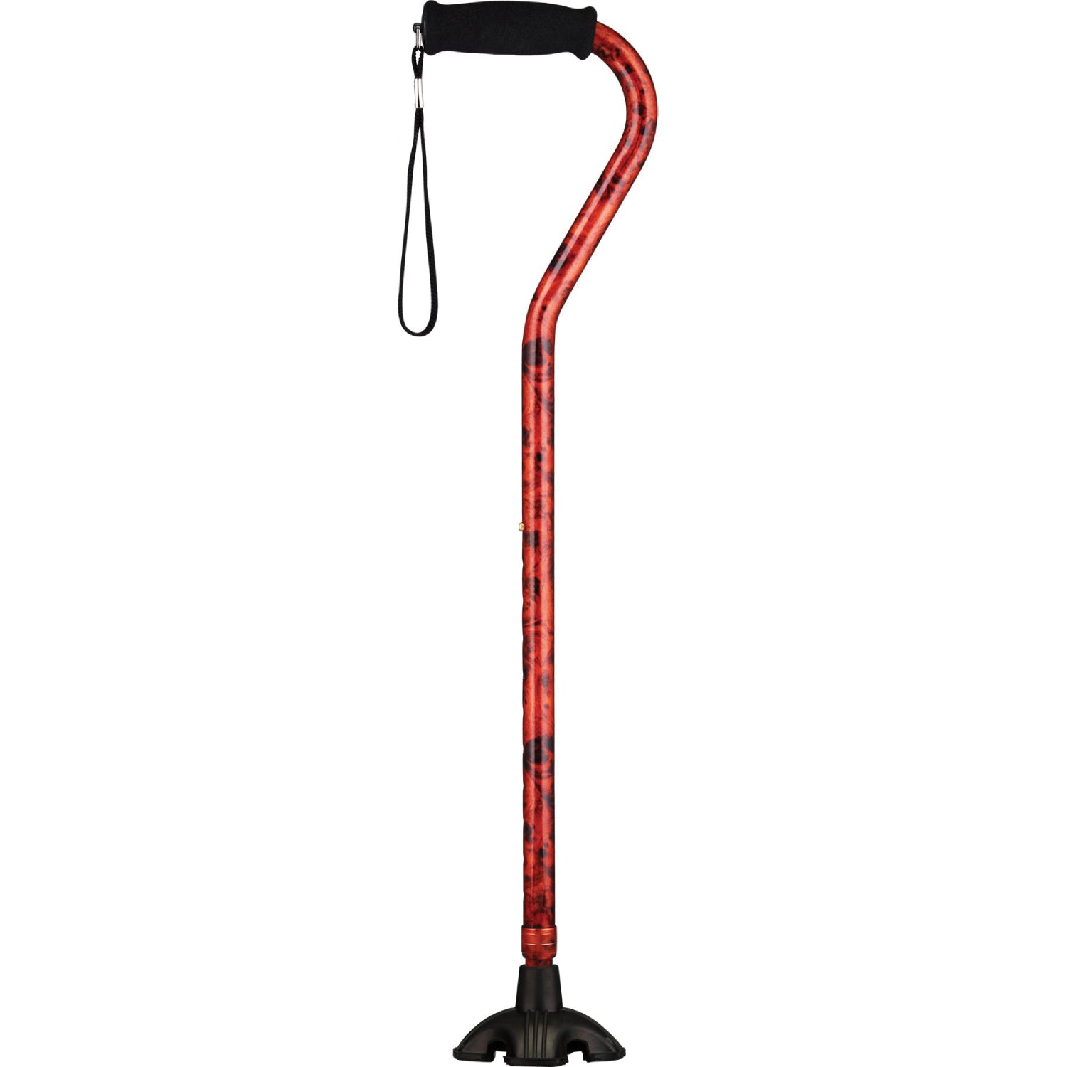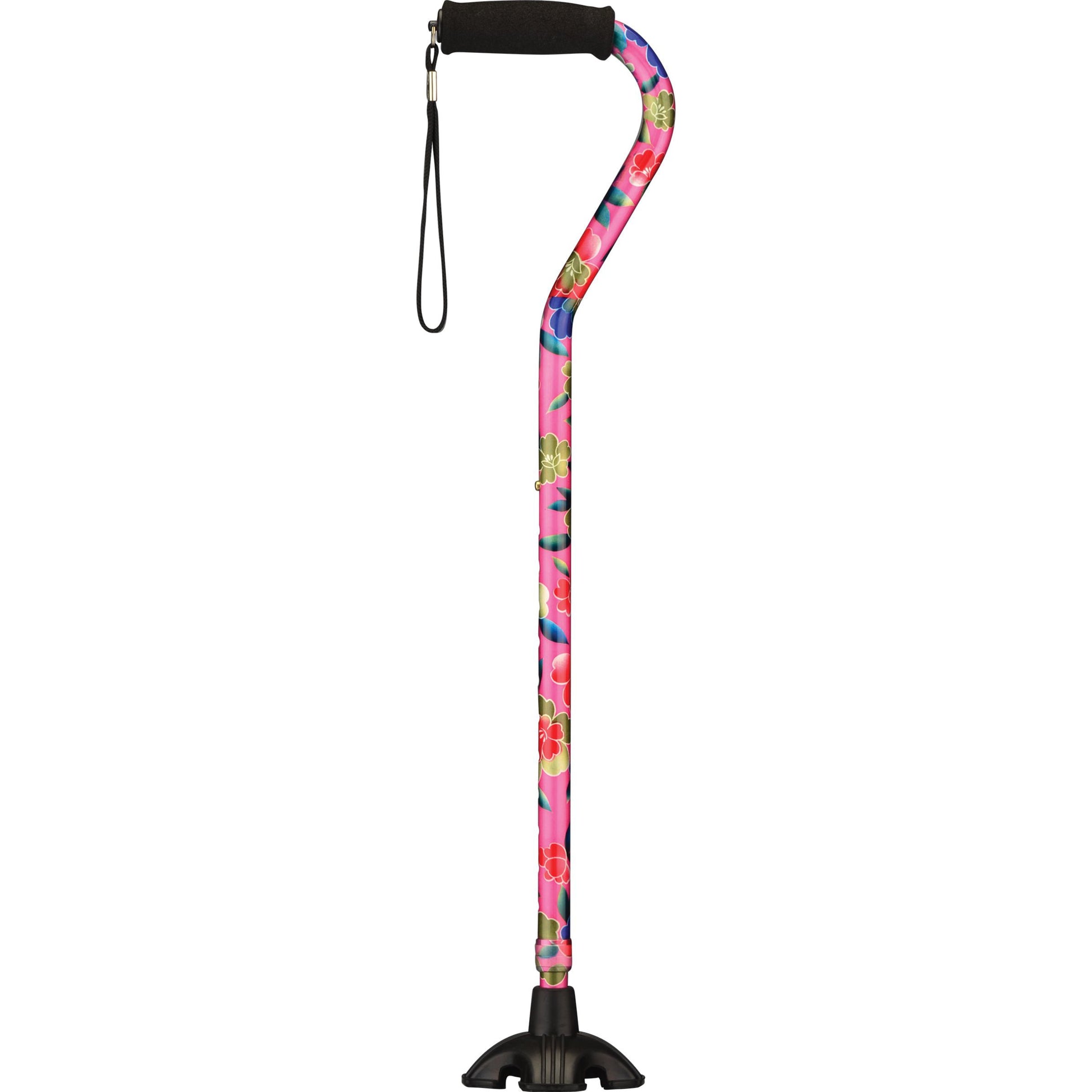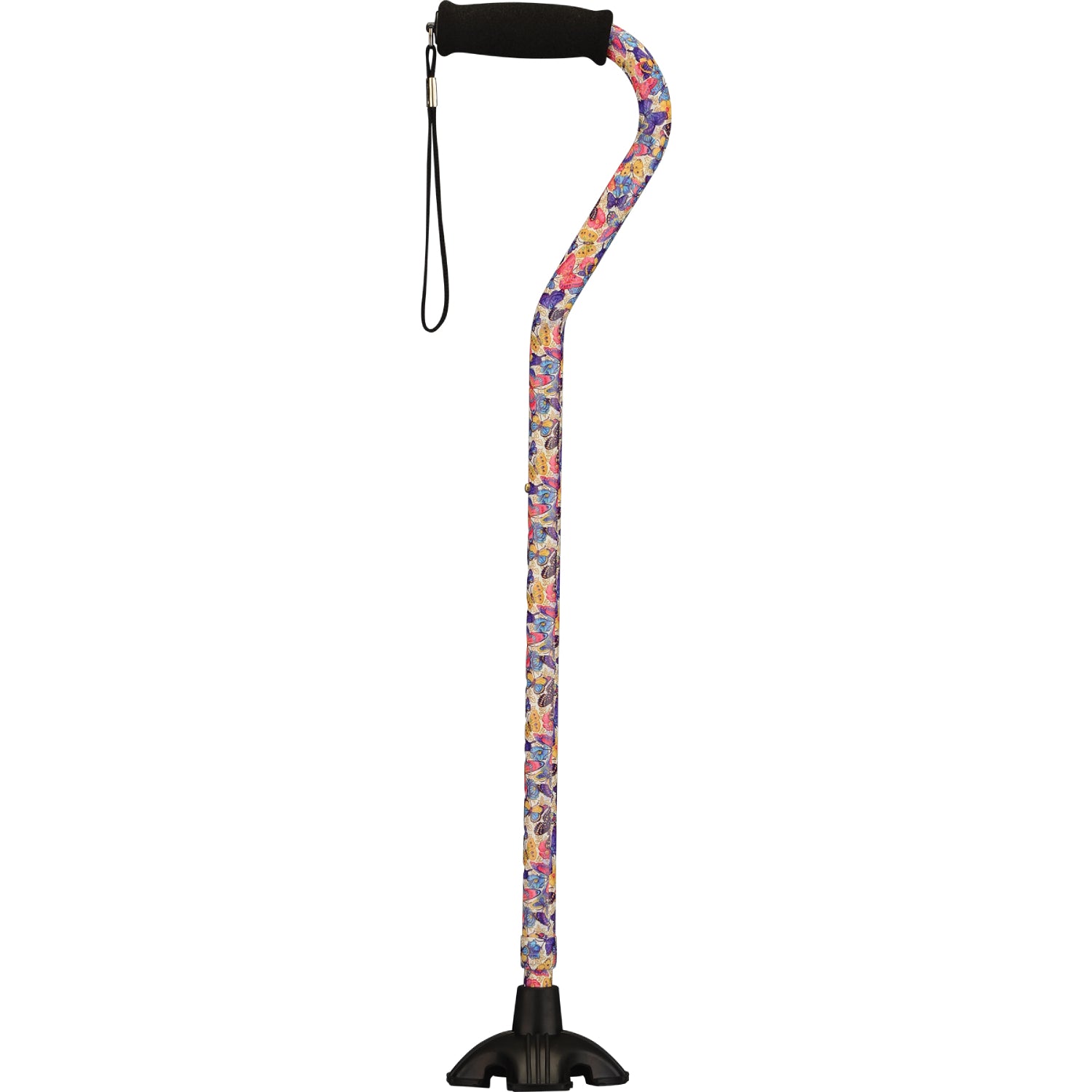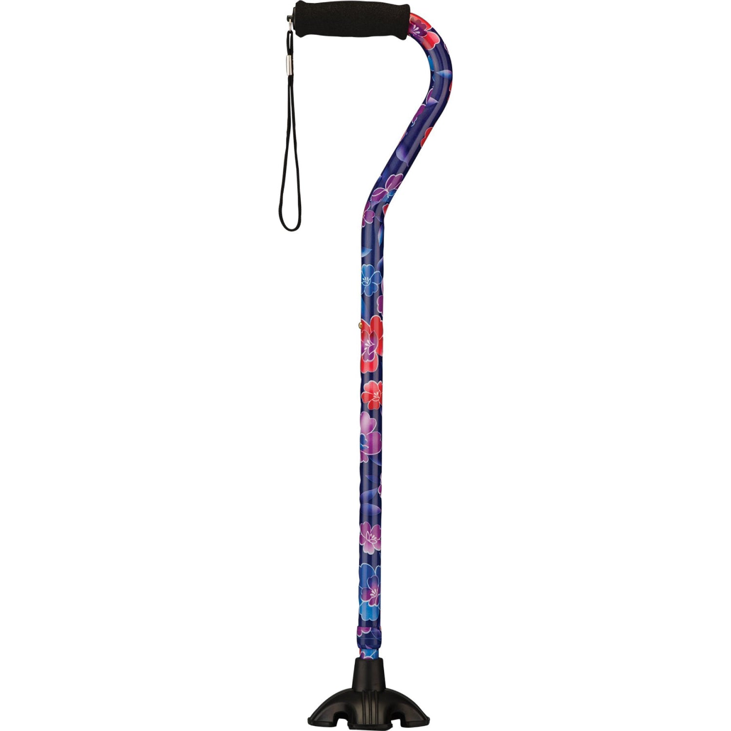 The SugarCane is the ultimate cane solution and fashion accessory. The offset shape provides excellent support for the wrist, the soft grip is comfortable for the hands and the strap is super convenient. The Quad Tip base stands the SugarCane upright on flat surfaces, provides great stability, traction and pivot on uneven and sloped terrain, and helps to reduce strain on the hand and wrist. And because style matters, the SugarCane is beautiful and stays beautiful with gorgeous fade and chip resistant patterns.