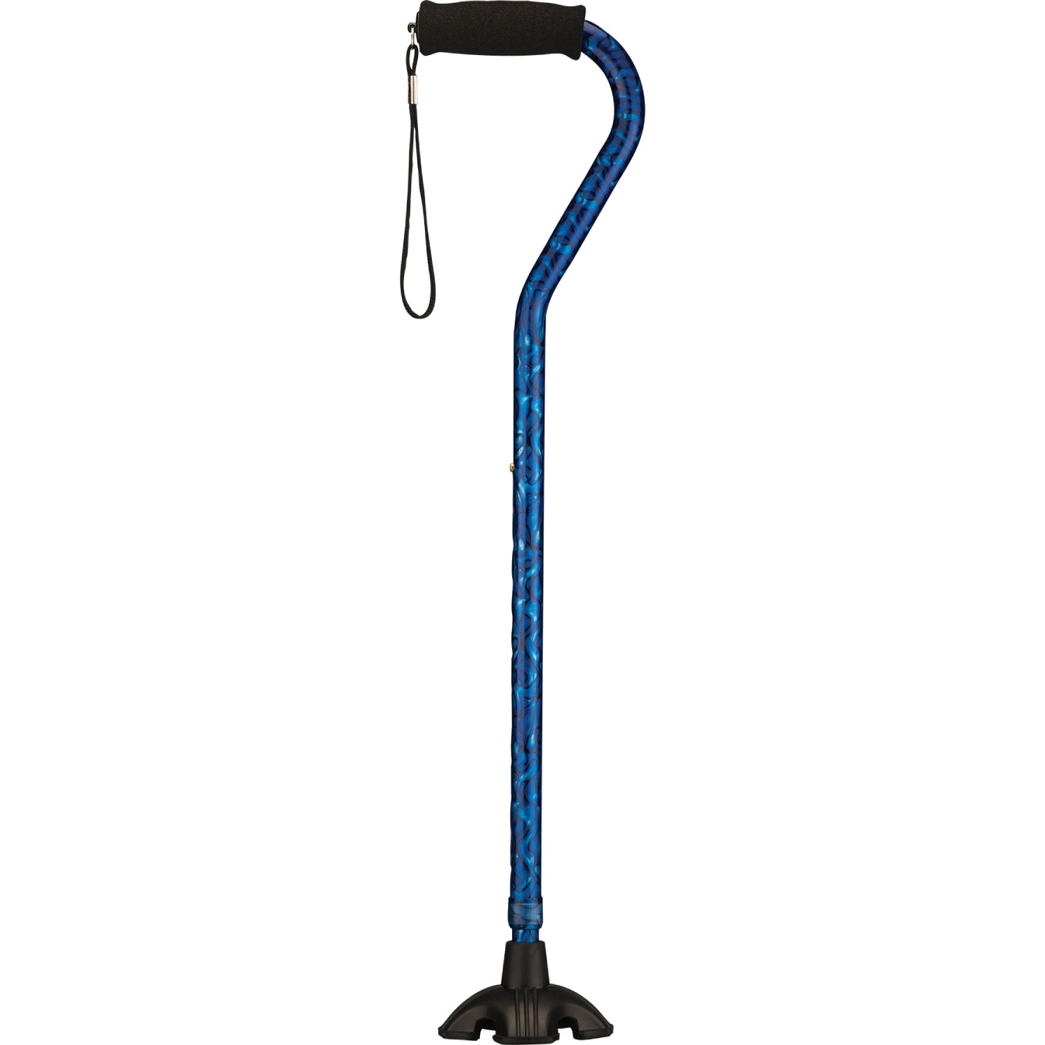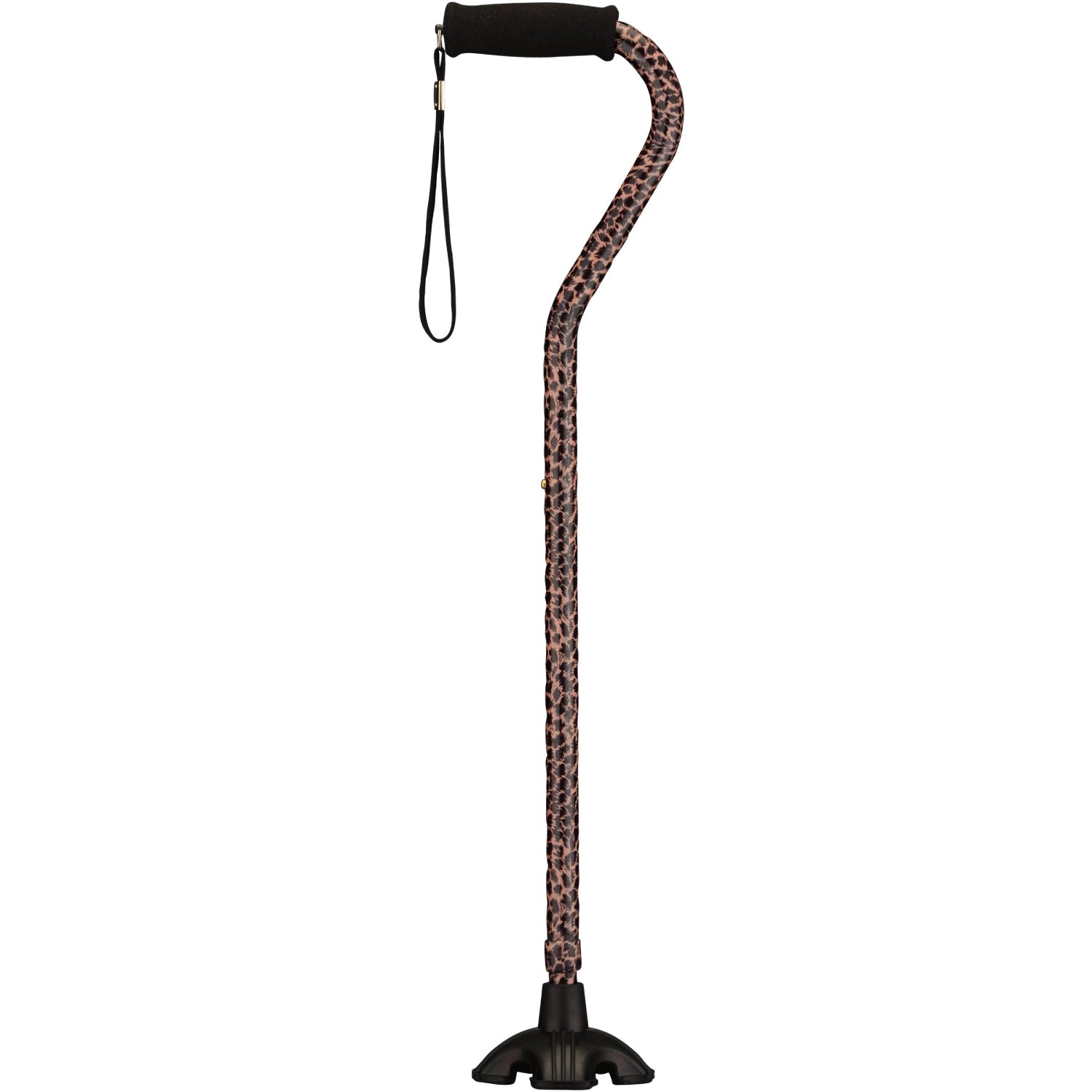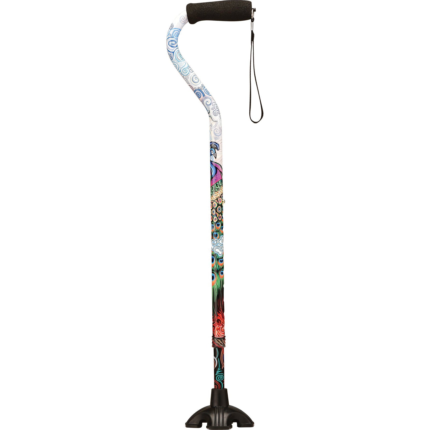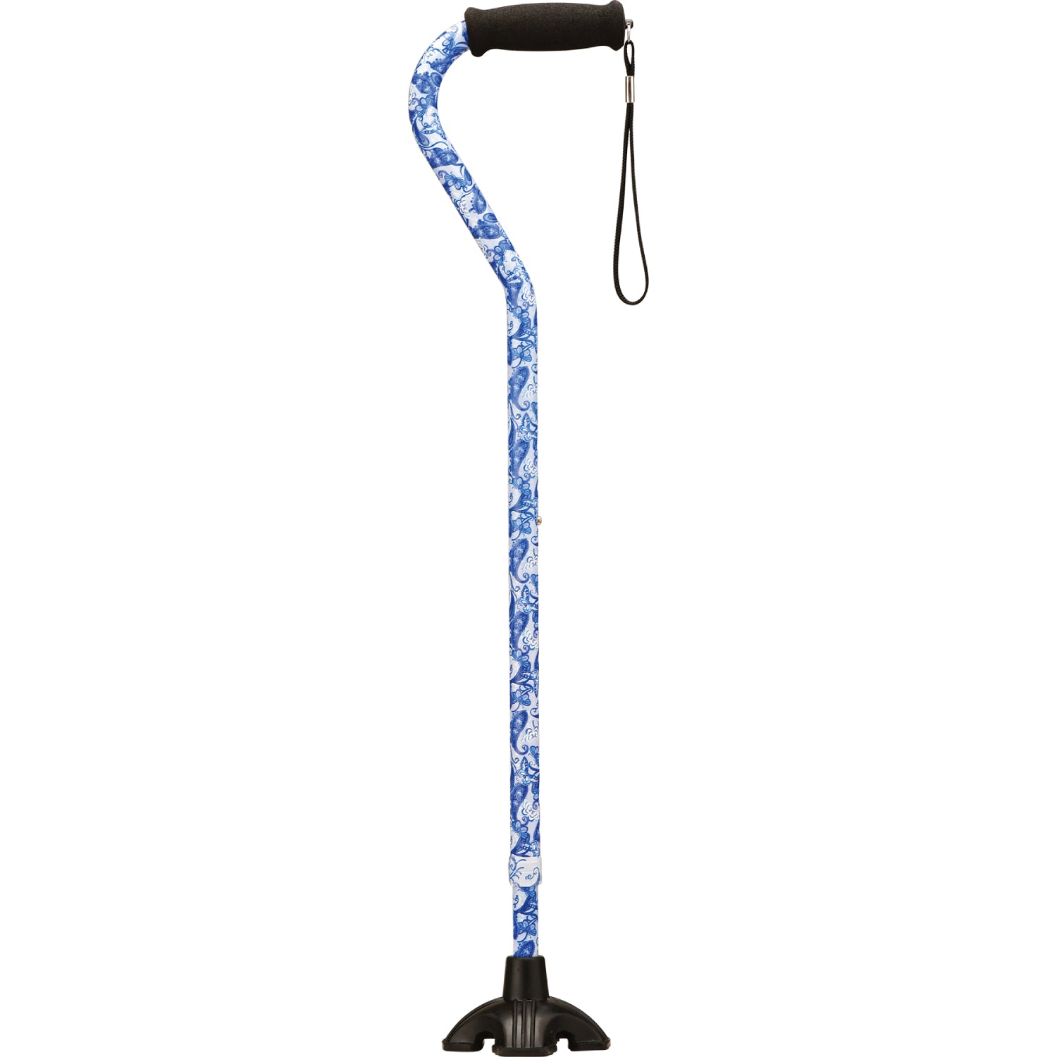 The SugarCane is the ultimate cane solution and fashion accessory. The offset shape provides excellent support for the wrist, the soft grip is comfortable for the hands and the strap is super convenient. The Quad Tip base stands the SugarCane upright on flat surfaces, provides great stability, traction and pivot on uneven and sloped terrain, and helps to reduce strain on the hand and wrist. And because style matters, the SugarCane is beautiful and stays beautiful with gorgeous fade and chip resistant patterns.